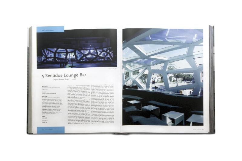 Infrastructures, town planning, cultural facilities, homes, leisure centers and offices. A complete selection of contemporary projects make up this extensive Atlas of Architecture. Among these projects we find the 5 senses lounge bar in Empuriabrava designed by ON-A.