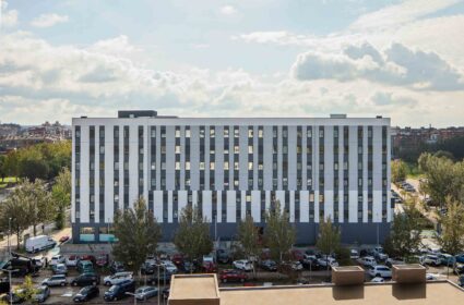 La residencia Nodis Girona se integra en la nueva generación de alojamientos universitarios que buscan dar respuesta al crecimiento de la demanda de vivienda para estudiantes en las principales ciudades universitarias. Ubicada en Girona, la residencia incorpora 306 nuevas plazas y contribuye a ampliar la limitada oferta existente en la ciudad. El proyecto forma parte del plan de expansión de Grupo Moraval junto a su operadora especializada Nodis, con el objetivo de mejorar la disponibilidad de alojamiento para estudiantes y crear espacios residenciales adaptados a las dinámicas actuales de la vida universitaria.